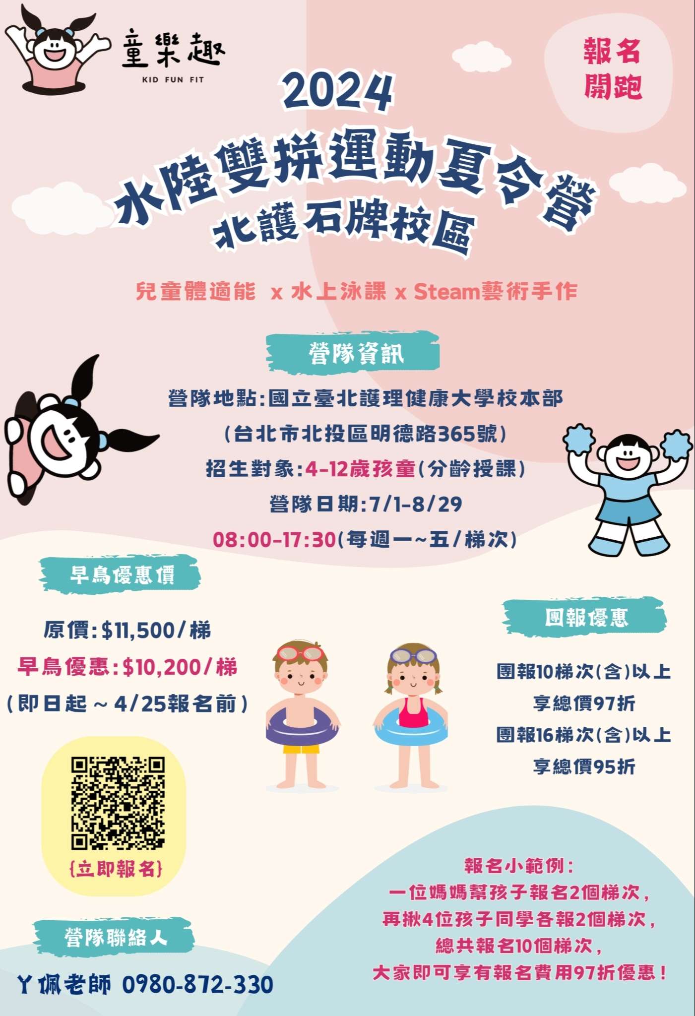 一、推廣教育中心與童博健康管理工作室合作開辦「2024 水陸雙拼運動夏令營」即日起受理報名。